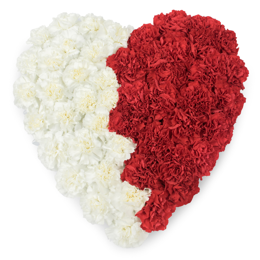 Express your deepest sympathies with our Timeless White & Red Carnation Bouquet. This classic arrangement features a blend of elegant white and bold red carnations, thoughtfully arranged to offer comfort and beauty.
